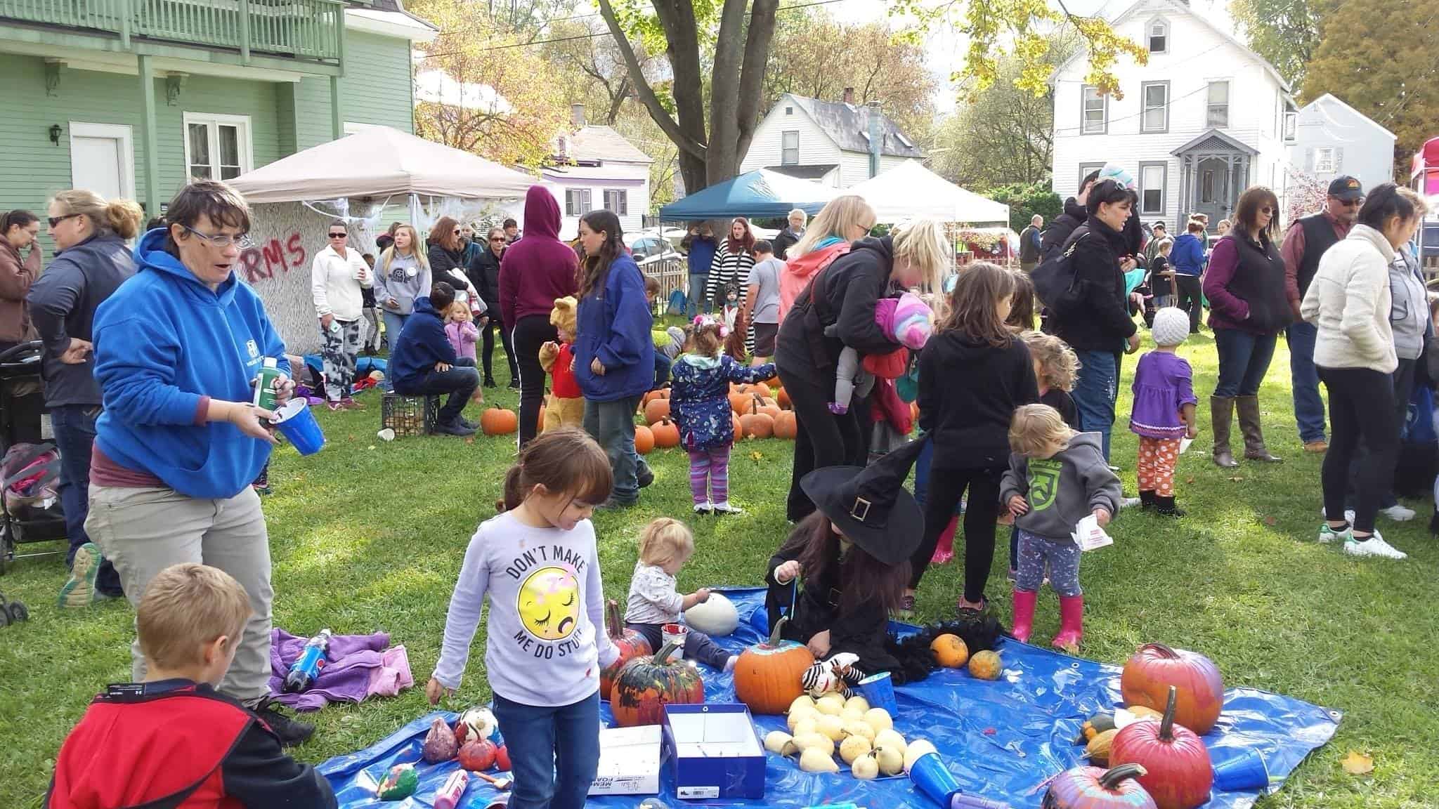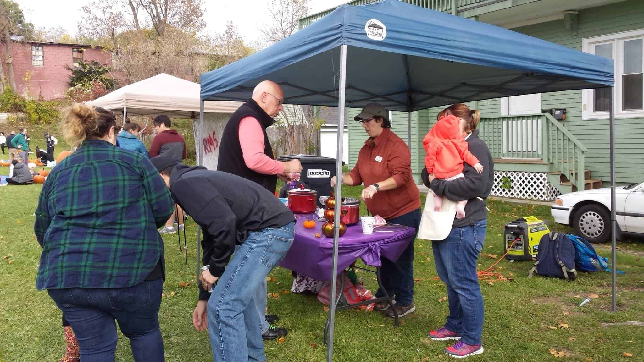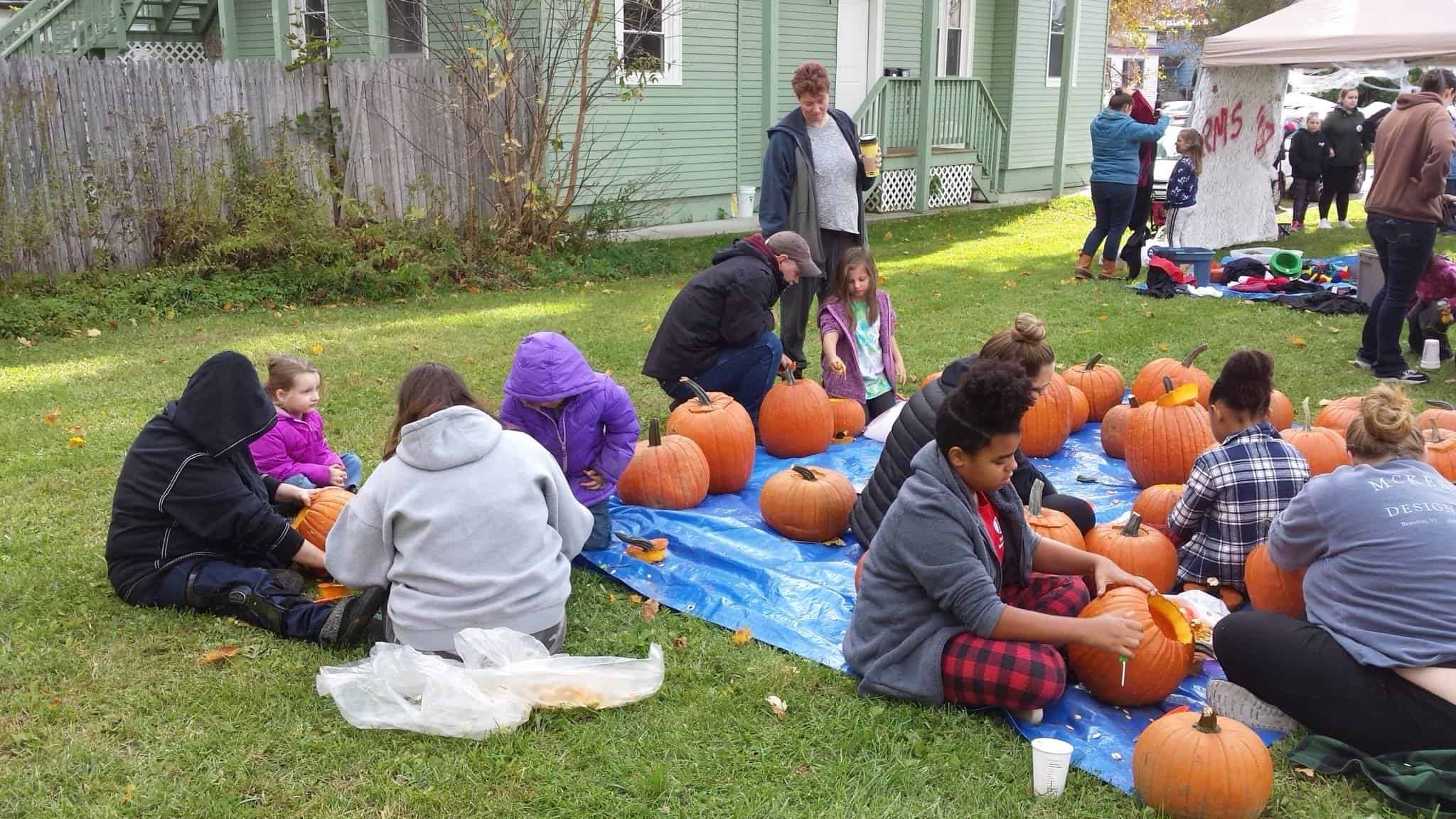 On Saturday morning (October 20th), residents of Rutland came to the 113 Library Avenue Community Green Space ready to carve and paint pumpkins, enjoy hot chocolate and donuts, partake in chocolate covered marshmallow ghosts, and drink apple cider all while enjoying the beautiful fall day. This event marked the third annual Fall Festival presented by NeighborWorks of Western Vermont with lots of support and help from other wonderful community organizations.